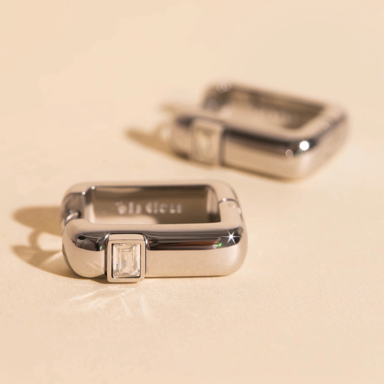 Crystal Chunky Rounded Rectangle Huggie Hoop Earrings
